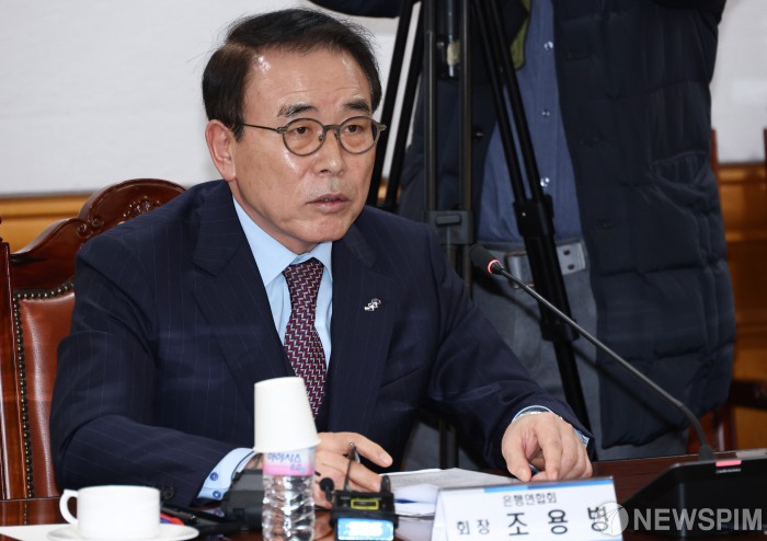 [서울=뉴스핌] 최지환 기자 = 조용병 은행연합회장이 10일 오후 서울 중구 은행회관에서 열린 금융감독원장-금융지주회장 간담회에서 모두발언을 하고 있다. 2025.12.10 choipix16@newspim.com