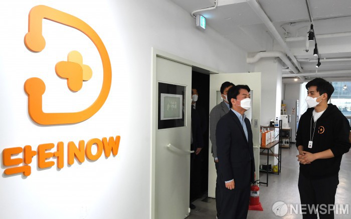 | [서울=뉴스핌] 국회사진취재단 = 안철수 국민의당 대표가 4일 오전 서울 강남구 역삼동 닥터나우 본사에서 열린 '코로나19를 이겨내는 청년들' 비대면 진료 스타트업 방문 간담회에 앞서 닥터나우 본사를 둘러보고 있다. 2021.06.04 photo@newspim.com |
