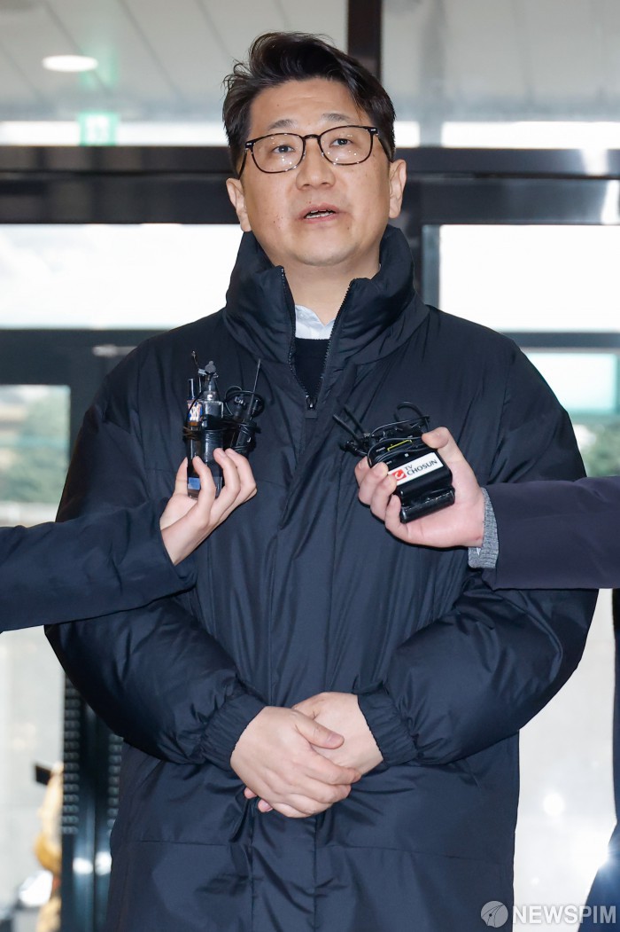 [서울=뉴스핌] 류기찬 기자 = 쿠팡 수사 외압 의혹을 제기한 문지석 광주지검 부장검사가 11일 오전 서울 서초구에 마련된 관봉권·쿠팡 특검 사무실에 참고인 조사를 받기 위해 출석하며 입장을 밝히고 있다. 2025.12.11 ryuchan0925@newspim.com