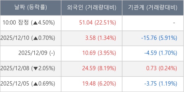 [표] 외국인ㆍ기관 순매매량 (단위 만주)