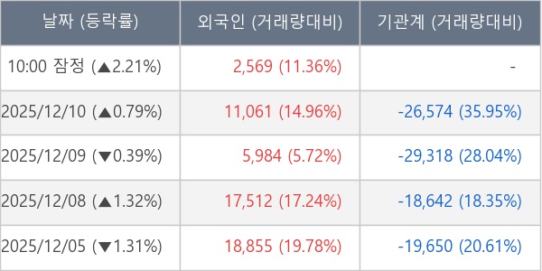 [표] 외국인ㆍ기관 순매매량 (단위 주)
