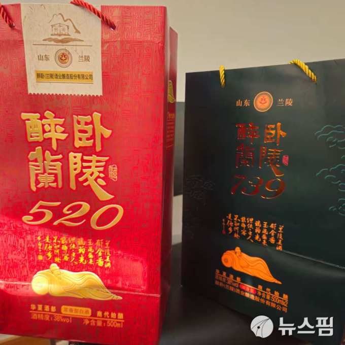 [서울=뉴스핌] 최헌규 중국전문기자= 산둥성 린이시의 명주 난링미주가 만드는 와취난링. 술 곽과 술 병에 세상 최고의 명주 난릉미주에 취해 누워있는 이백의 초상화와 천고에 전해지는 시 '난릉미주'가 인쇄돼 있다.  2025.12.11 chk@newspim.com