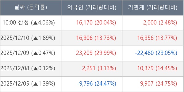 ※ 사모펀드 등 일부 기관의 순매매량은 표시되지 않음