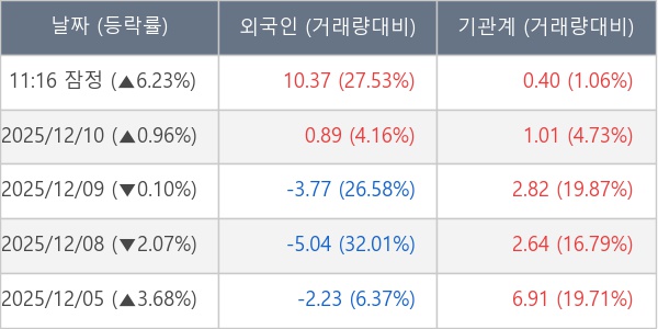 ※ 사모펀드 등 일부 기관의 순매매량은 표시되지 않음