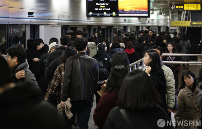 [서울=뉴스핌] 양윤모 기자 = 서울지하철 1∼8호선을 운영하는 서울교통공사 노조의 총파업 예고일을 하루 앞둔 11일 충무로 역에서 시민들이 지하철을 이용하고 있다. 2025.12.11 yym58@newspim.com