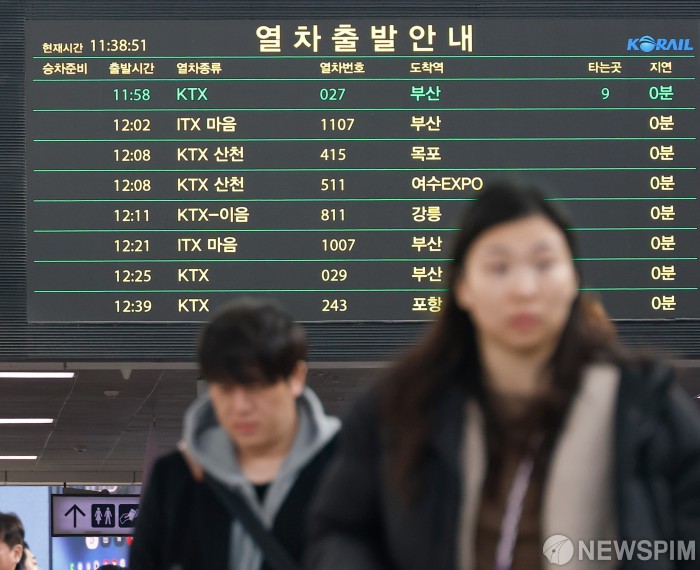[서울=뉴스핌] 류기찬 기자 = 전국철도노동조합이 파업을 유보함에 따라 모든 열차가 정상 운행하고 있는 11일 오전 서울역 전광판에 운행정보가 표시되고 있다. 2025.12.11 ryuchan0925@newspim.com