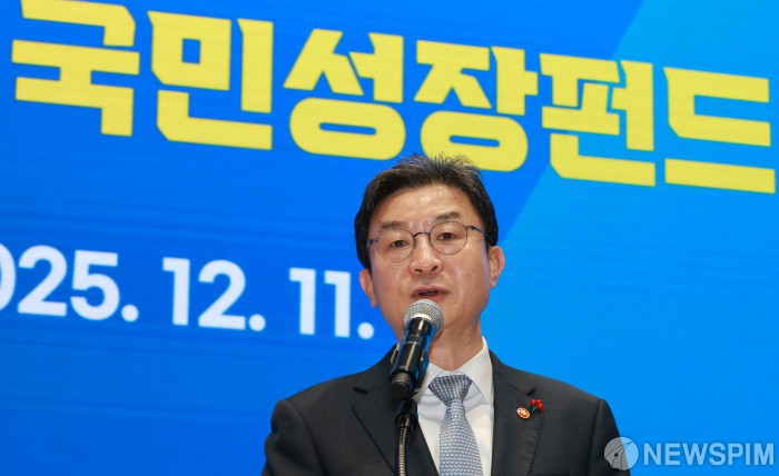 [서울=뉴스핌] 김학선 기자 = 이억원 금융위원장이 11일 서울 여의도 산업은행 본점에서 열린 국민성장펀드 출범식에 참석해 축사하고 있다. 2025.12.11 yooksa@newspim.com