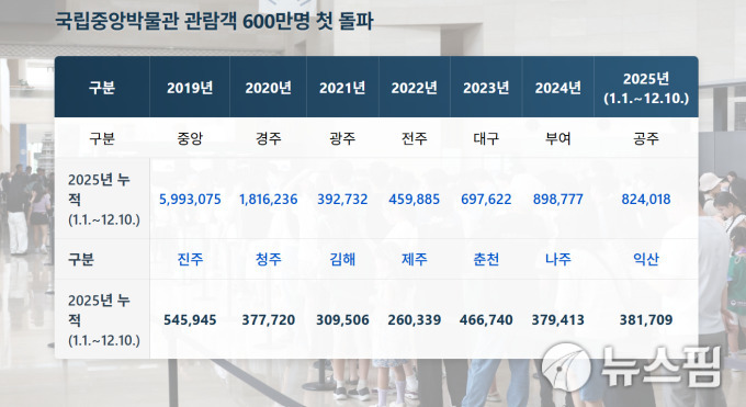 [서울=뉴스핌] 이지은 기자 = 국립중앙박물관은 11일 오후 2시경, 연간 누적 관람객 600만 명을 돌파했다고 밝혔다.