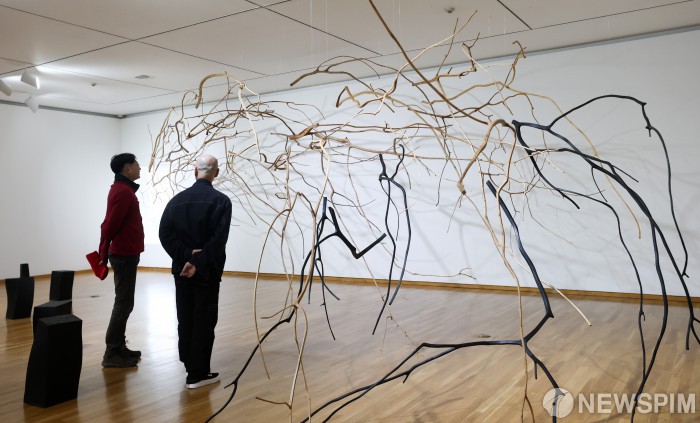[서울=뉴스핌] 최지환 기자 = 11일 오후 서울 종로구 금호미술관에 2025 ARKO LEAP 전시에 참여한 김주환 작가의 작품이 전시되어 있다. 2025 ARKO LEAP는 한국문화예술위원회가 올해 신규 출범한 지역예술도약지원사업의 일환으로 개최한 전시로 오는 12일부터 금호미술관, 일민미술관, 학고재 아트센터에서 동시 개최된다. 2025.12.11 choipix16@newspim.com