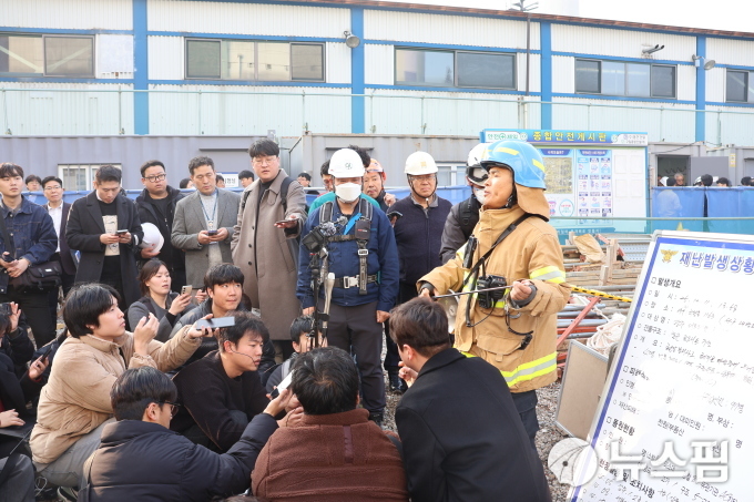 | [광주=뉴스핌] 박진형 기자 = 소방 관계자가 광주대표도서관 신축 공사장 붕괴 사고와 관련해 브리핑을 하고 있다. 2025.12.11 bless4ya@newspim.com |