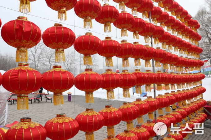 두장옌 공원 입구도 온통 붉은 색으로 장식돼 있습니다.