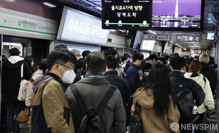 | [서울=뉴스핌] 양윤모 기자 = 1일 오전 서울 지하철 1∼8호선을 운영하는 서울교통공사의 노동조합이 임금·단체협상 결렬에 따른 대응으로 '준법운행'에 들어간 가운데, 동대문역사문화공원역에서 시민들이 출근을 위해 이동하고 있다. 2025.12.01 yym58@newspim.com |