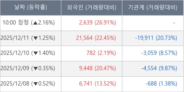 [표] 외국인ㆍ기관 순매매량 (단위 주)