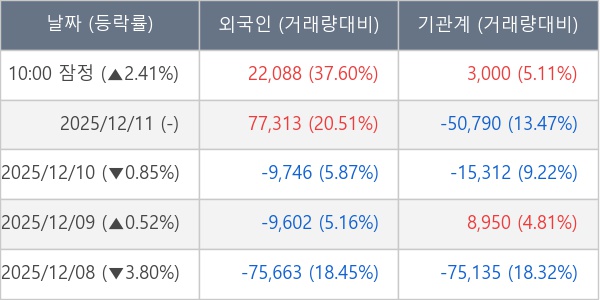 ※ 사모펀드 등 일부 기관의 순매매량은 표시되지 않음