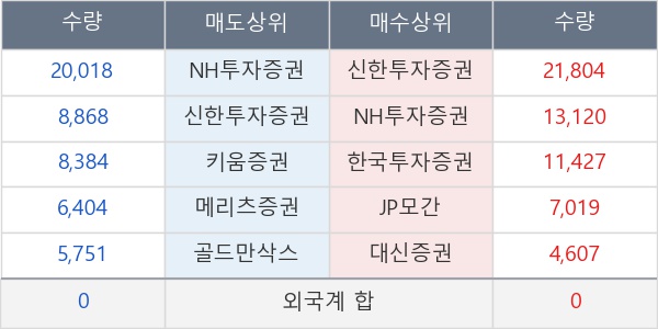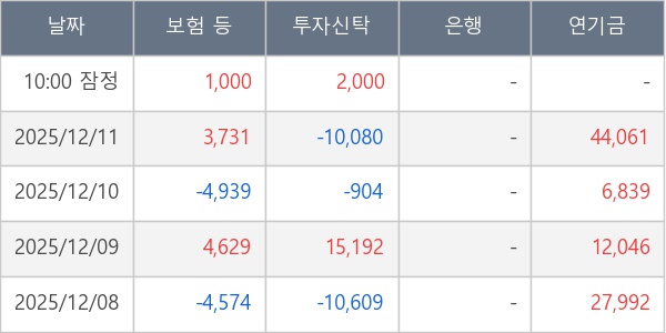 [표] 주요 기관별 순매매량 (단위 주)