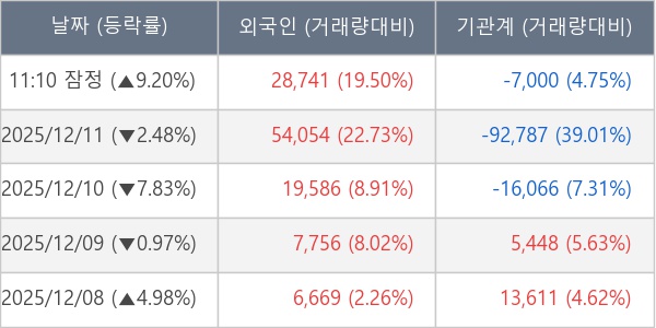 ※ 사모펀드 등 일부 기관의 순매매량은 표시되지 않음