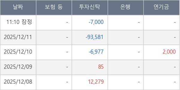 [표] 주요 기관별 순매매량 (단위 주)