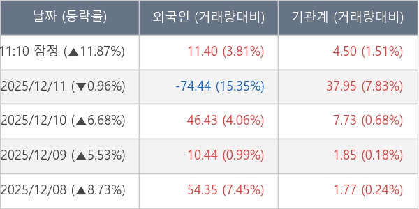 [장중수급포착] 클로봇, 기관 5일 연속 순매수행진... 주가 +11.87%