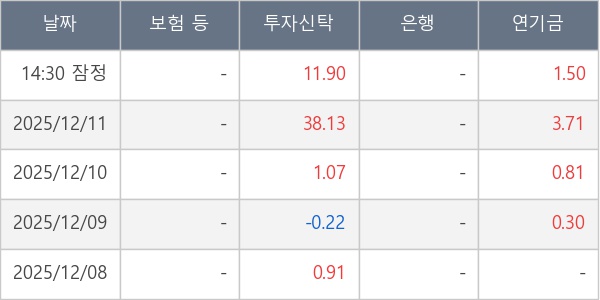 [표] 주요 기관별 순매매량 (단위 만주)