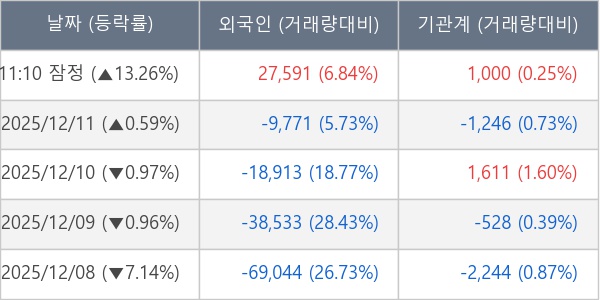[장중수급포착] 태웅, 외국인/기관 동시 순매수… 주가 +13.26%