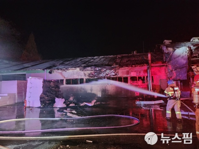 [여주=뉴스핌] 박승봉 기자 = 12일 새벽 경기 여주시 가남읍의 한 단열재 제조 공장에서 화재가 발생해 소방당국이 대응 1단계를 발령하고 90여 명을 투입해 진화에 나섰다.