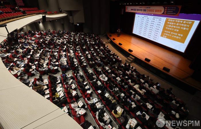 [서울=뉴스핌] 김학선 기자 = 13일 서울 성북구 고려대학교 인촌기념관에서 열린 2026 대입 정시모집 대비 진학지도 설명회에서 수험생과 학부모들이 강의를 듣고 있다. 2025.12.13 yooksa@newspim.com