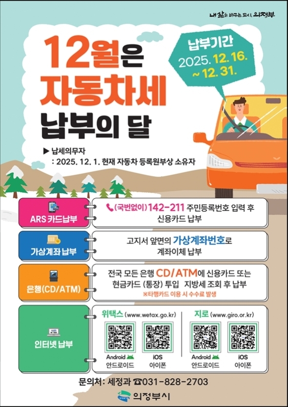 의정부시, 12월은 제2기분 자동차세 납부의 달[사진=의정부시] 2025.12.13 sinnews7@newspim.com