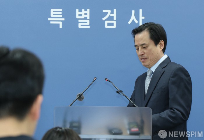 [서울=뉴스핌] 최지환 기자 = 윤석열 전 대통령 등의 내란·외환 혐의를 수사해온 조은석 특별검사가 15일 오후 서울 서초구 서울고등검찰청에 마련된 내란특검 브리핑룸에 수사결과를 브리핑하기 위해 입장하고 있다. 2025.12.15 choipix16@newspim.com