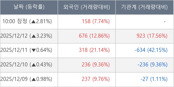 [표] 외국인ㆍ기관 순매매량 (단위 주)
