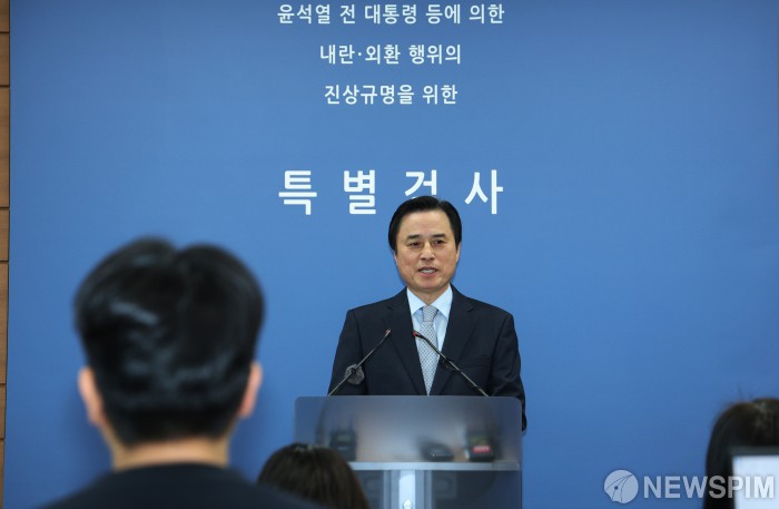 [서울=뉴스핌] 최지환 기자 = 조은석 특별검사가 15일 오후 서울 서초구 서울고등검찰청에 마련된 내란특검 브리핑룸에서 최종수사결과를 발표하고 있다. 2025.12.15 choipix16@newspim.com