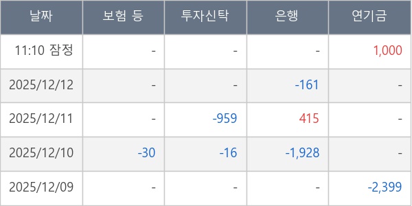 [표] 주요 기관별 순매매량 (단위 주)
