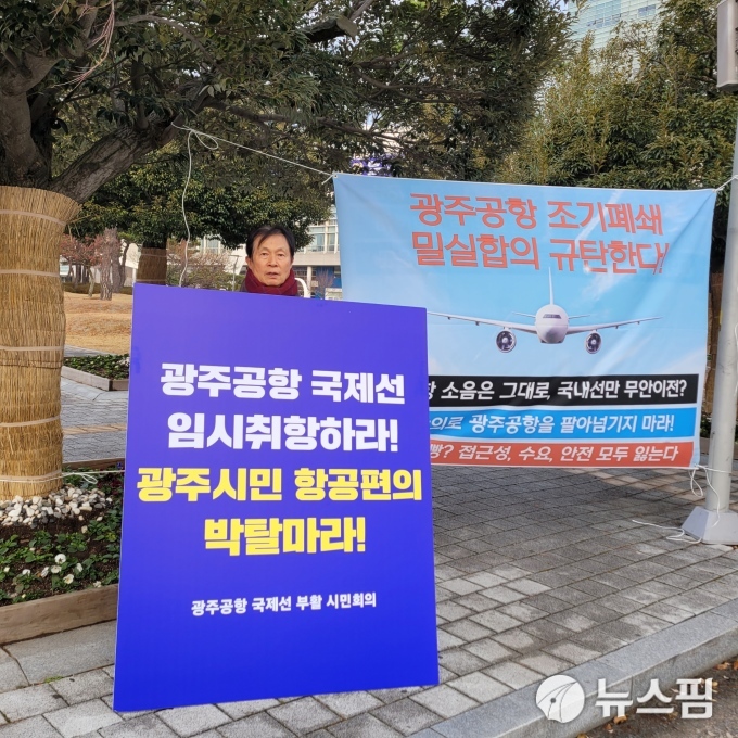 [광주=뉴스핌] 박진형 기자 = 광주공항 국제선 부활 시민회의가 "광주공항 국내선의 무안 선 이전은 결코 받아들일 수 없다"고 규탄했다.