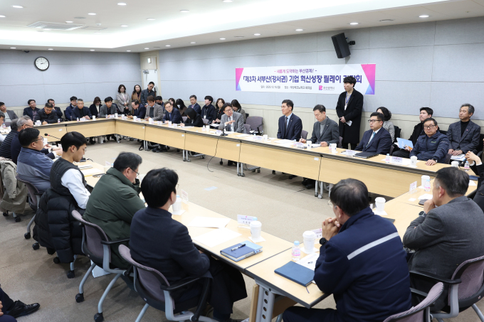 [부산=뉴스핌] 남동현 기자 = 부산시는 15일 오후 2시 강서구 부산과학산단 내 부산테크노파크 회의실에서 강서권 산업단지 입주기업과 함께 '제3차 기업 혁신성장 릴레이 간담회'를 개최했다.