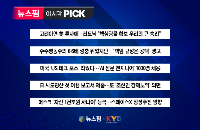 [뉴스핌 이 시각 PICK] 고려아연 투자에···러트닉 "핵심광물 확보 미국의 큰 승리" 外