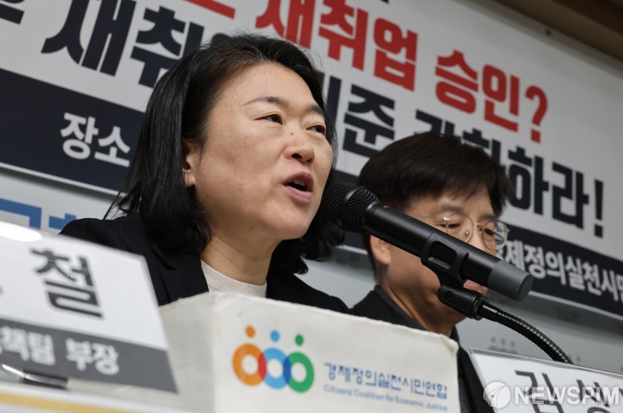 [서울=뉴스핌] 양윤모 기자 = 김성달 경실련 사무총장이 16일 서울 종로구 경실련 강당에서 '관피아' 실태를 알리고 정부에 근절방안 마련을 촉구하는 5개 정부 부처(고용노동부·교육부·법무부·행정안전부·환경부)의 퇴직공직자들 재취업심사 현황을 발표하는 기자회견에서 발언을 하고 있다. 행사에는 정호철 경실련 경제정책팀 부장, 김성달 경실련 사무총장, 방효창 경실련 정책위원장, 최나리 경실련 경제정책팀 간사, 권오인 경실련 경제정책팀 국장이 참석했다. 2025.12.16 yym58@newspim.com