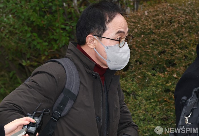 [서울=뉴스핌] 최지환 기자 = 윤석열 전 대통령 부부의 관저 이전 특혜 의혹을 받는 김오진 전 국토교통부 1차관이 16일 오후 서울 서초구 서울중앙지방법원에서 열린 영장실질심사(구속 전 피의자 심문)를 마치고 법정을 나서고 있다. 2025.12.16 choipix16@newspim.com