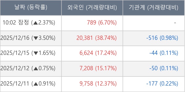 [표] 외국인ㆍ기관 순매매량 (단위 주)