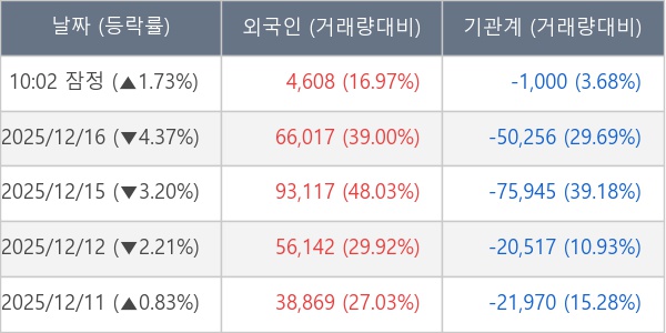 ※ 사모펀드 등 일부 기관의 순매매량은 표시되지 않음