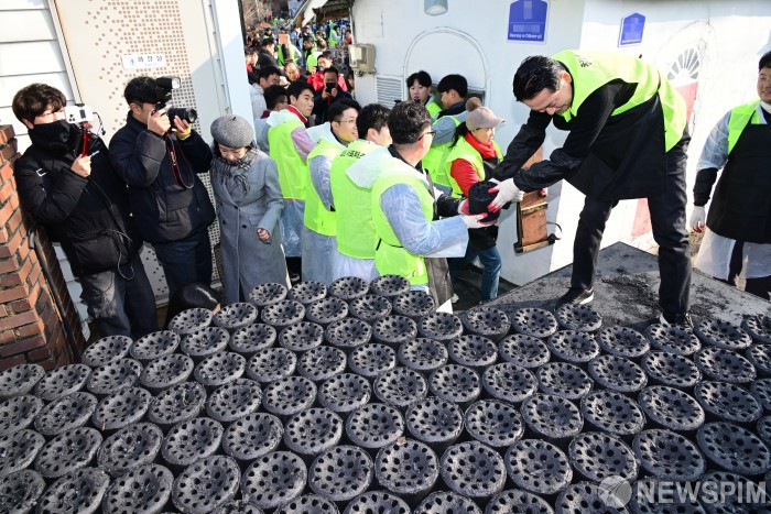 [고양=뉴스핌] 최지환 기자 = 장동혁 국민의힘 대표가 17일 오전 경기 고양시 화전마을에서 연탄 배달 봉사활동을 하고 있다. 2025.12.17 choipix16@newspim.com