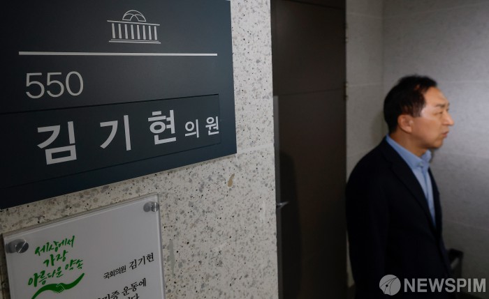 [서울=뉴스핌] 류기찬 기자 = 김기현 국민의힘 의원이 17일 오후 서울 여의도 국회 의원회관에서 압수수색에 대한 입장을 밝히고 있다. 2025.12.17 ryuchan0925@newspim.com