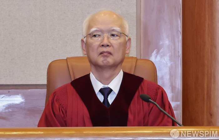 [서울=뉴스핌] 양윤모 기자 = 정형식 헌법재판관이 18일 서울 종로구 헌법재판소에서 열린 조지호 경찰청장 탄핵심판 선고기일에 참석해 있다. 헌법재판소는 이날 만장일치로 조지호 경찰청장의 파면을 결정했다. 조 청장의 파면은 12·3 비상계엄 당시 국회 출입을 통제하는 등 입법부 권한을 침해하고 계엄에 가담했다는 의혹 등으로 소추된 지 371일만이다. 2025.12.18 yym58@newspim.com