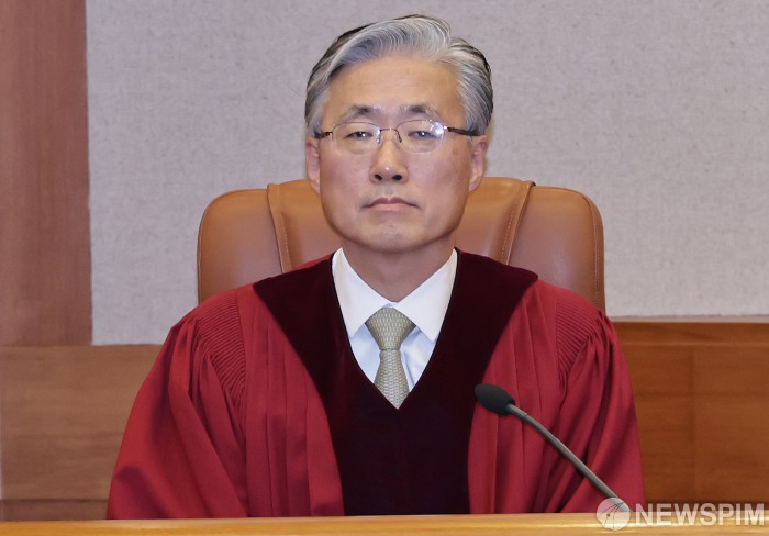 [서울=뉴스핌] 양윤모 기자 = 김형두 헌법재판관이 18일 서울 종로구 헌법재판소에서 열린 조지호 경찰청장 탄핵심판 선고기일에 참석해 있다. 헌법재판소는 이날 만장일치로 조지호 경찰청장의 파면을 결정했다. 조 청장의 파면은 12·3 비상계엄 당시 국회 출입을 통제하는 등 입법부 권한을 침해하고 계엄에 가담했다는 의혹 등으로 소추된 지 371일만이다. 2025.12.18 yym58@newspim.com