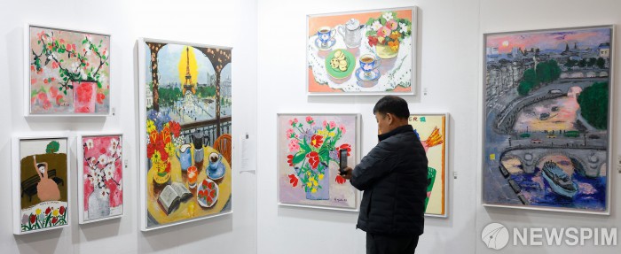[서울=뉴스핌] 류기찬 기자 = 18일 오후 서울 강남구 코엑스에서 열린 ‘2025 서울 홈·테이블데코페어’를 찾은 관람객들이 다양한 그림들을 살펴보고 있다. 2025.12.18 ryuchan0925@newspim.com