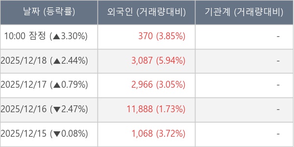 [표] 외국인ㆍ기관 순매매량 (단위 주)