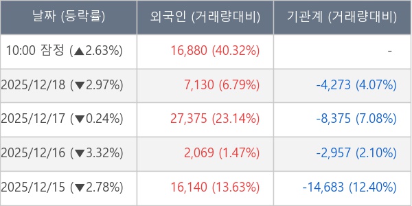 [표] 외국인ㆍ기관 순매매량 (단위 주)