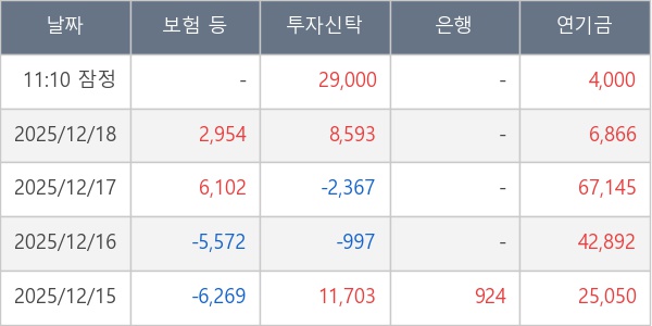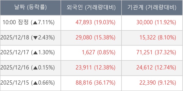 ※ 사모펀드 등 일부 기관의 순매매량은 표시되지 않음