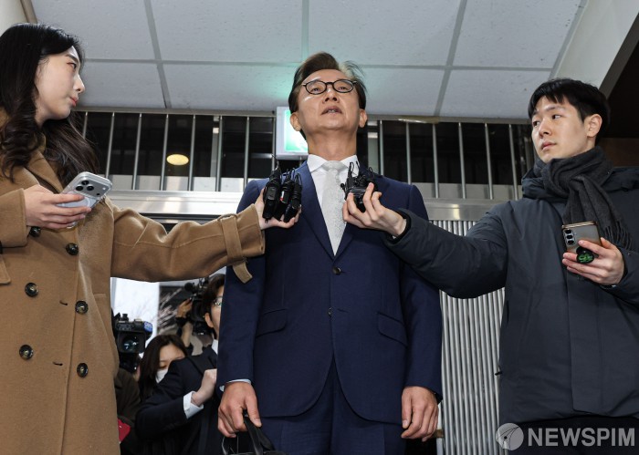 [서울=뉴스핌] 이길동 기자 = '통일교 금품수수 의혹'을 받는 전재수 더불어민주당 의원이 19일 오전 서울 서대문구 경찰청 국가수사본부에 피의자 신분으로 출석하며 취재진의 질문에 답하고 있다. 2025.12.19gdlee@newspim.com