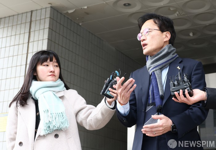 [서울=뉴스핌] 최지환 기자 = 박주민 더불어민주당 의원이 19일 오후 서울 양천구 서울남부지방법원에서 열린 패스트트랙 충돌 사건 선고기일에서 벌금 300만원 선고유예를 받은 뒤 입장을 밝히고 있다. 2025.12.19 choipix16@newspim.com