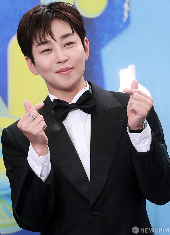 [서울=뉴스핌] 이형석 기자 = 방송인 딘딘이 20일 오후 서울 여의도 KBS에서 열린 연예대상 시상식 포토월에서 포즈를 취하고 있다. 2025.12.20 leehs@newspim.com