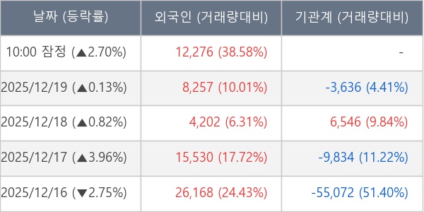 [표] 외국인ㆍ기관 순매매량 (단위 주)